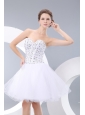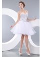 Cute White A-line / Princess Sweetheart Evening Dress Organza Beading Mini-length
