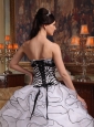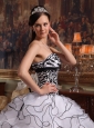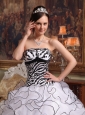 Strapless dresses are one of the sexier styles on the market today.So how could you not adore this striking strapless ball gown? They show just enough skin to be classy without being too revealing. This princess dress features gorgeous appliques on the top bustline and prominent zebra print on the torso.The amazing ball gown is reminiscent of the old fashioned hoop skirts against with the archaic wallpaper behind, which is made from several layers of two tone vertical ruffles showing the purity and elegance of a fair lady.Therefore, this is definitely a fantastic choice for someone wanting something a little different for their special occasion. An exquisite lace up consists the back perfectly.