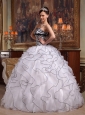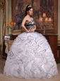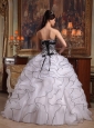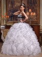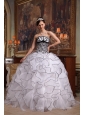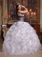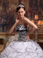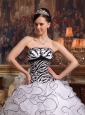 Cute White Quinceanera Dress Strapless Ruffles Organza and Zebra Ball Gown