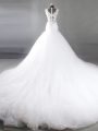 Cute White Sleeveless Chapel Train Lace Wedding Gowns