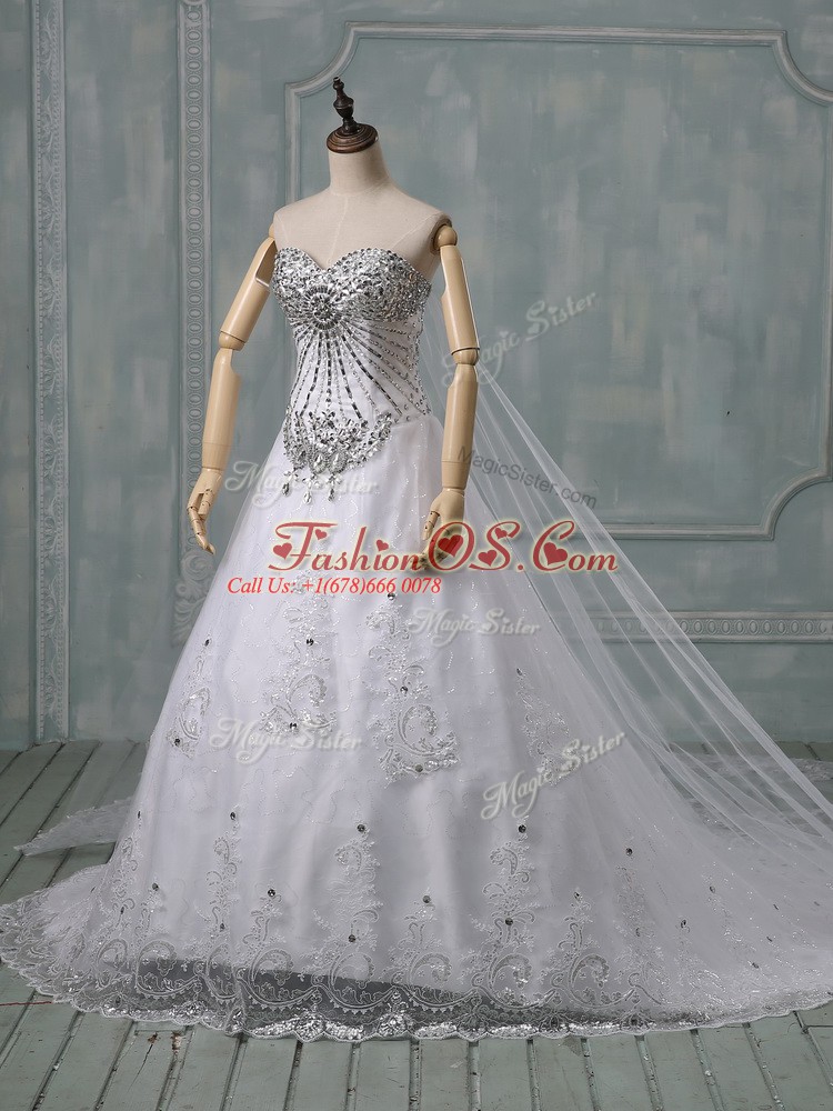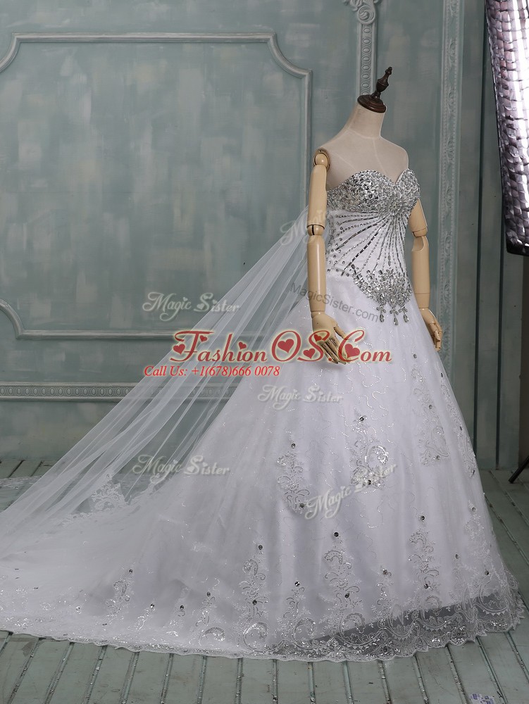 Cute White Sweetheart Neckline Beading and Lace Wedding Dresses Sleeveless Lace Up