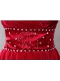 It's like a fire will light your eyes when meet this dress. The pleated fabric makes it striking. The fitted bodice stands out for a crossed sweetheart neckline and a wide waistband embellished with shimmering crystals. Tea-length skirt hemmed with flouncing hemline and exquisite pleats and folds straps softly and miraculously. Zipper up back finishes a gorgeous design. You can dance the night away gleefully in this dress!