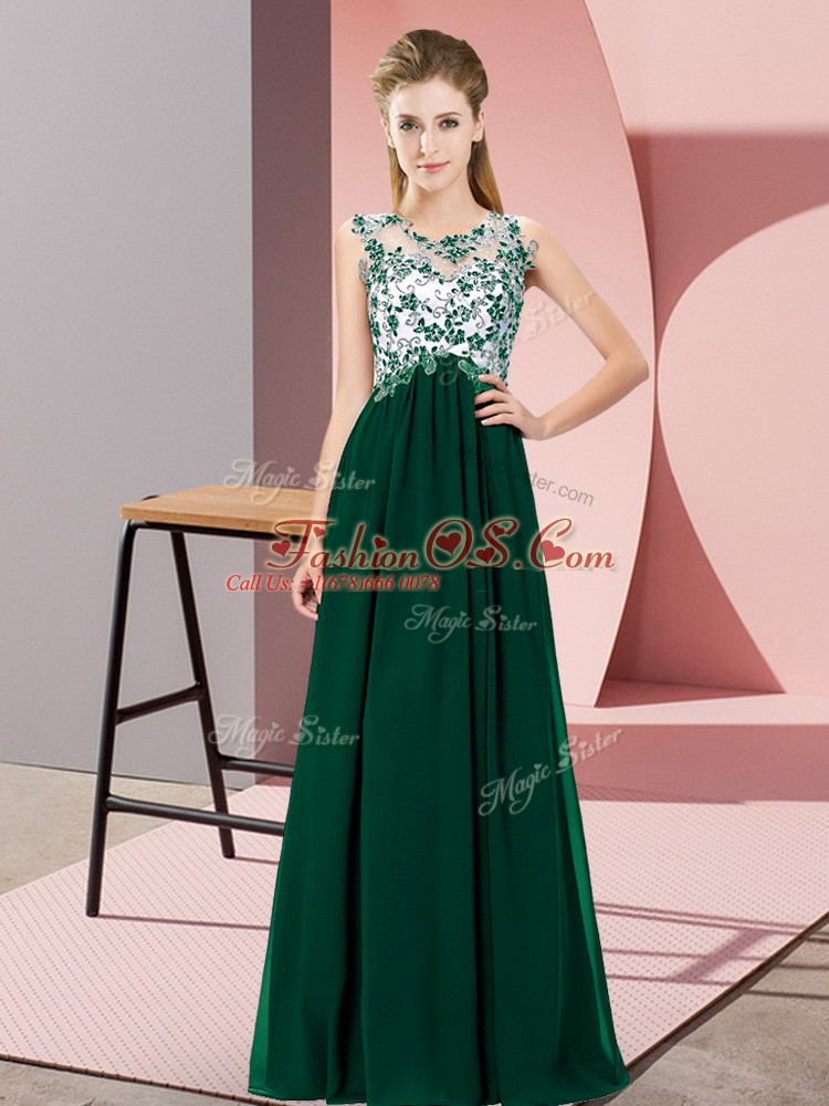 Dark Green Empire Beading and Appliques Vestidos de Damas Zipper Chiffon Sleeveless Floor Length