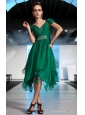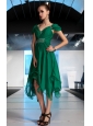 Home >  Prom Dresses >  Short Prom Dresses > Dark Green Empire V-neck High-low Chiffon Beading and Ruch Prom Dress
