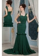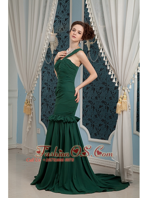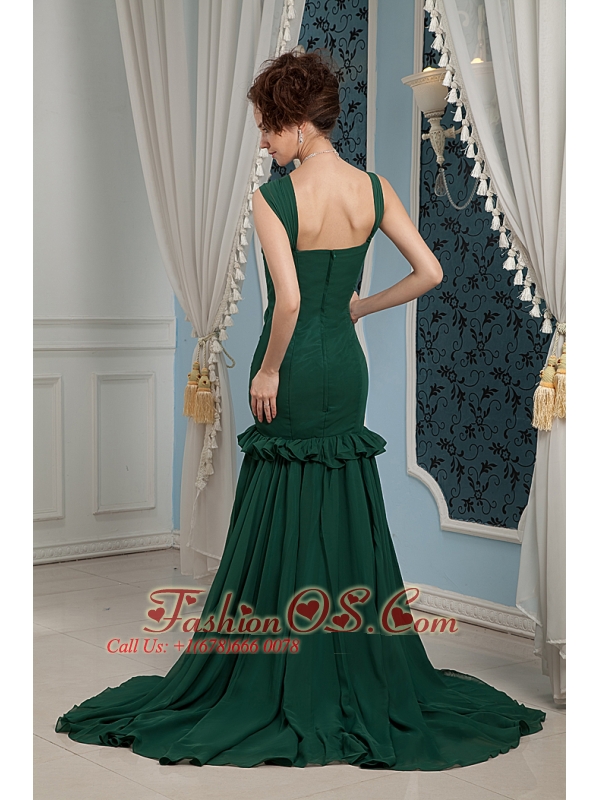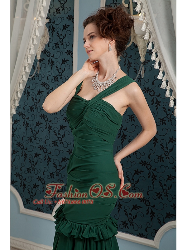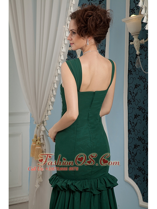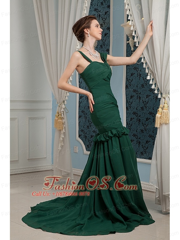 Dark Green Mother Of Bride Dress For 2013 Mermaid Straps Brush Train Chiffon Ruch