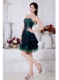 Dark Green Princess Sweetheart Short Prom / Homecoming Dress Taffeat Beading Mini-length