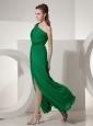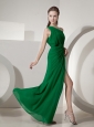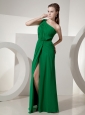 Dark Green Prom Dress One Shoulder High Slit Empire Chiffon Beading