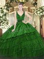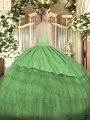 Dark Green Sleeveless Organza and Taffeta Zipper 15 Quinceanera Dress for Military Ball and Sweet 16 and Quinceanera