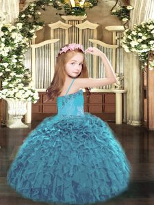 Dark Green Spaghetti Straps Lace Up Beading and Ruffles Pageant Gowns For Girls Sleeveless
