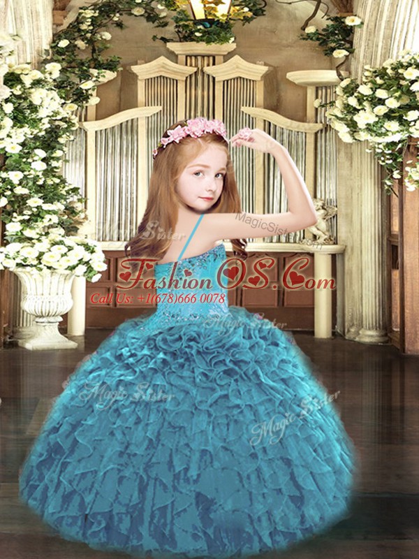 Home >  Special Occasion Dresses >  Lovely Little Girl Pageant Dresses > Dark Green Spaghetti Straps Lace Up Beading and Ruffles Pageant Gowns For Girls Sleeveless