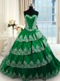 Home >  Quinceanera Dresses >  Discount Quinceanera Dresses > Dark Green Sweetheart Lace Up Beading and Appliques and Ruffled Layers Sweet 16 Dresses Court Train Sleeveless