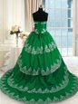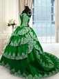 Dark Green Sweetheart Lace Up Beading and Appliques and Ruffled Layers Sweet 16 Dresses Court Train Sleeveless