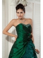 Dark Green Sweetheart Taffeta and Organza Beading Dama Dresses