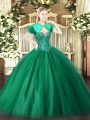 Dark Green Tulle Lace Up Sweetheart Sleeveless Floor Length 15th Birthday Dress Beading