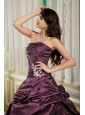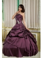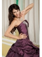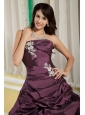 Dark Purple A-line / Princess Strapless Cute Quinceanera Dress Taffeta Appliques Floor-length