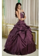 Home >  Quinceanera Dresses >  Cute Quinceanera Dresses > Dark Purple A-line / Princess Strapless Cute Quinceanera Dress Taffeta Appliques Floor-length