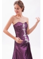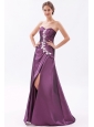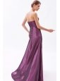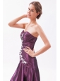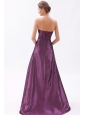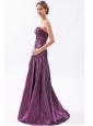 Dark Purple A-line / Princess Sweetheart Prom Dress Beading Brush Train Taffeta