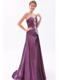 Home >  Prom Dresses >  Beautiful Prom Dresses > Dark Purple A-line / Princess Sweetheart Prom Dress Beading Brush Train Taffeta
