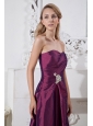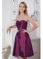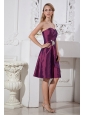 Dark Purple A-line Sweetheart Bridesmaid Dress Appliques With Beading Knee-length Taffeta