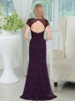 Home >  Prom Dresses >  Modest Prom Dresses > Dark Purple Bateau Ruching Lace Cap Sleeves Prom Dress for 2015