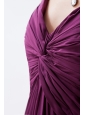 A fit and flare gown featuring a straps neckline with asymmetrical ruching. The dress has a touch of beading at the waist.The open back adds the charm.The high slit complete the look.This excellent dress is your best choice for any party.