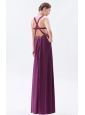 Dark Purple Column / Sheath Straps Prom Dress Chiffon Beading Floor-length