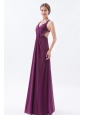 Dark Purple Column / Sheath Straps Prom Dress Chiffon Beading  Floor-length