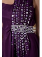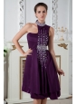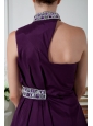 Home >  Prom Dresses >  Unique Prom Dresses > Dark Purple Empire Asymmetrical Prom Dress Knee-length Chiffon Beading