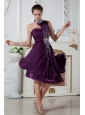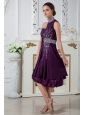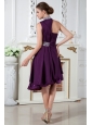 Dark Purple Empire Asymmetrical  Prom Dress Knee-length Chiffon Beading