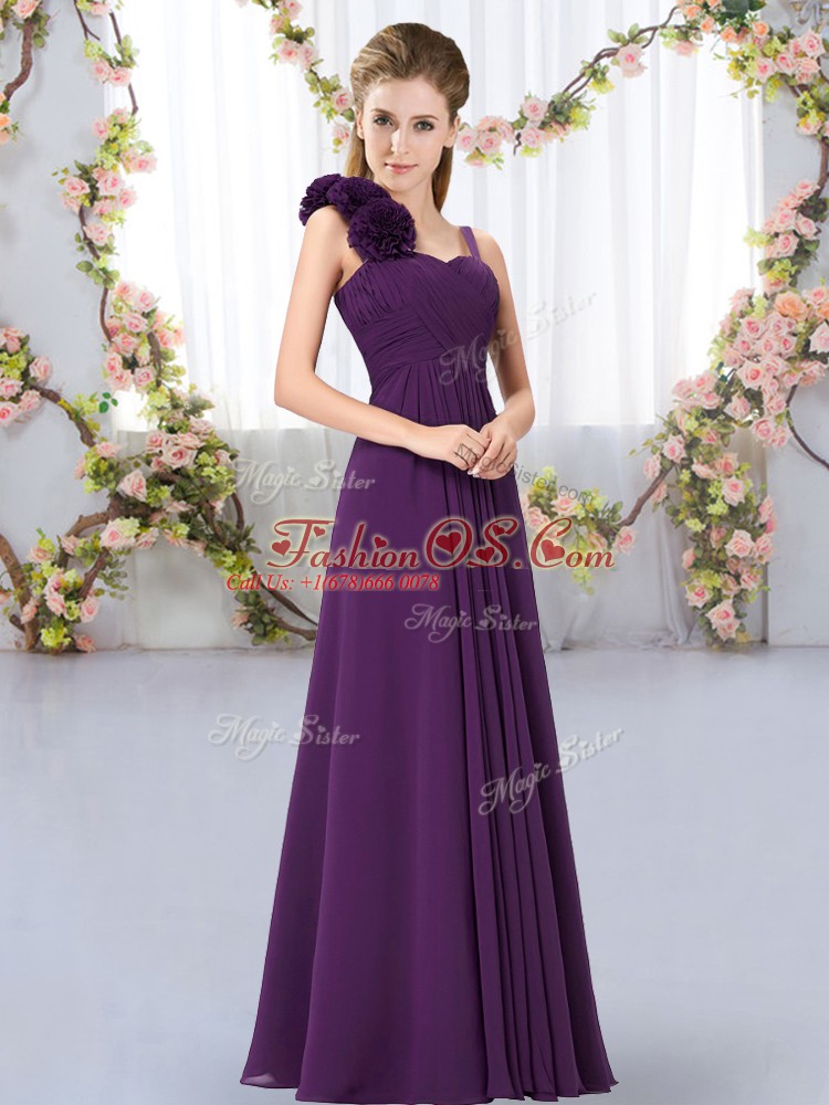 Dark Purple Empire Chiffon Straps Sleeveless Hand Made Flower Floor Length Lace Up Vestidos de Damas