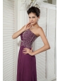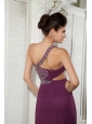 Home >  Evening Dresses > Dark Purple Empire Evening Dress One Shoulder Chiffon Beading Brush Train