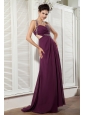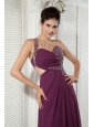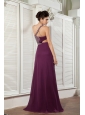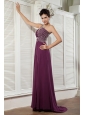 Dark Purple Empire Evening Dress One Shoulder Chiffon Beading Brush Train