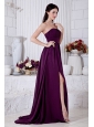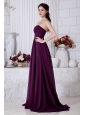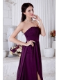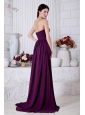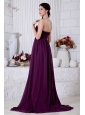 Dark Purple Empire Strapless Ruch Prom / Evening Dress Brush Train Chiffon