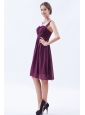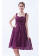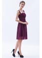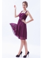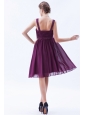 Dark Purple Empire Straps Prom Dress Chiffon Beading Knee-length