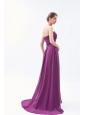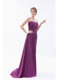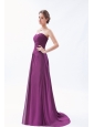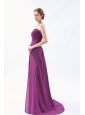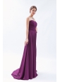 Dark Purple Empire Sweetheart Brush Train Chiffon Ruch Bridesmaid Dress