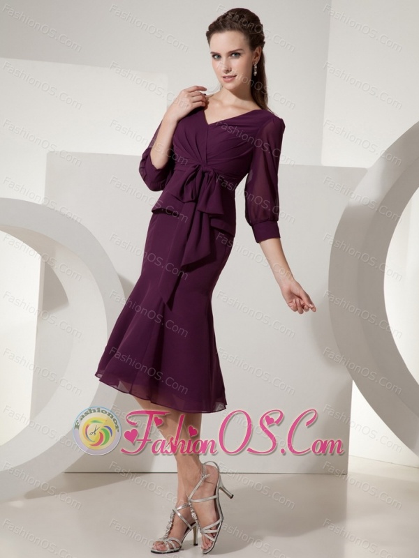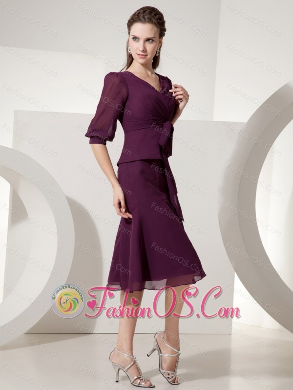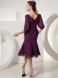 Dark Purple Empire V-neck Knee-length Mother Of The Bride Dress Chiffon