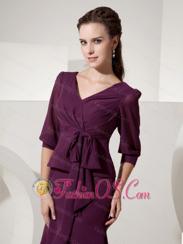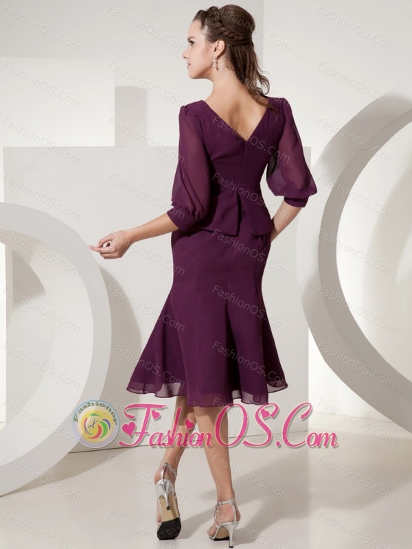 Home >  Special Occasion Dresses >  Mother of the Bride Dresses > Dark Purple Empire V-neck Knee-length Mother Of The Bride Dress Chiffon