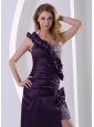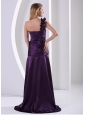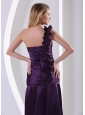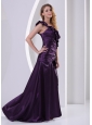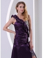 Home >  Special Occasion Dresses >  Celebrity Dresses > Dark Purple High Slit One Shoulder Ruched Bodice and Bead Decorate Celebrity Dress Party Style
