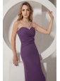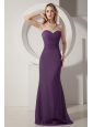 Dark Purple Junior Prom Dress Ruch Column Sweetheart Brush Train Chiffon