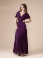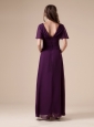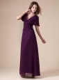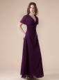 Dark Purple Mother Of The Bride Dress Column Short Sleeves Chiffon Ruch