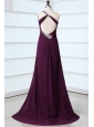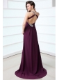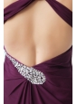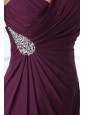 Home >  Prom Dresses >  Sexy Prom Dresses > Dark Purple One Shoulder High Slit Beading and Ruching Chiffon Prom Dress