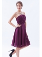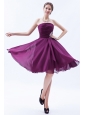 Dark Purple Prom Dress A-line / Princess Strapless Chiffon Appliques Knee-length