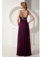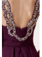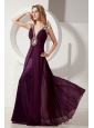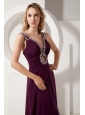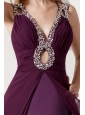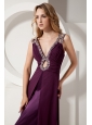 Dark Purple Prom Dress Column V-neck Floor-length Elastic Woven Satin and Chiffon Beading