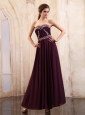 Dark Purple Prom Dress With Beaded Ankle-length Chiffon Sweetheart