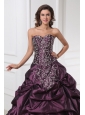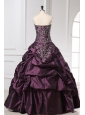 Dark Purple Sweetheart Appliques with Beading Quinceanera Dress