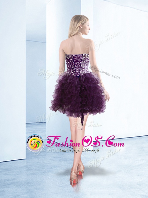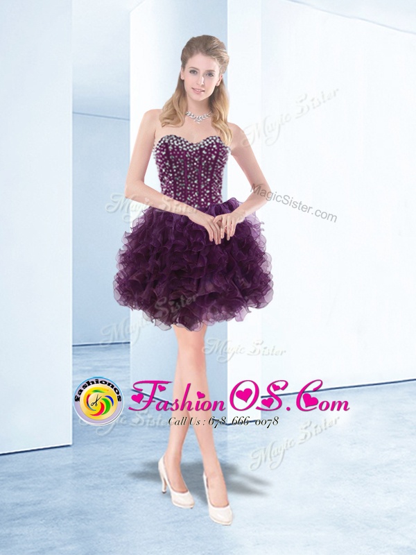 Dark Purple Sweetheart Neckline Beading and Ruffles Celebrity Dresses Sleeveless Lace Up