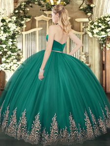 Dark Purple Two Pieces Halter Top Sleeveless Tulle Floor Length Zipper Appliques 15th Birthday Dress
