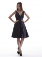 Dark Purple V-neck Bridemaid Dress Knee-length Taffeta