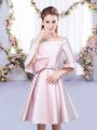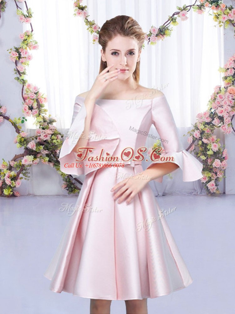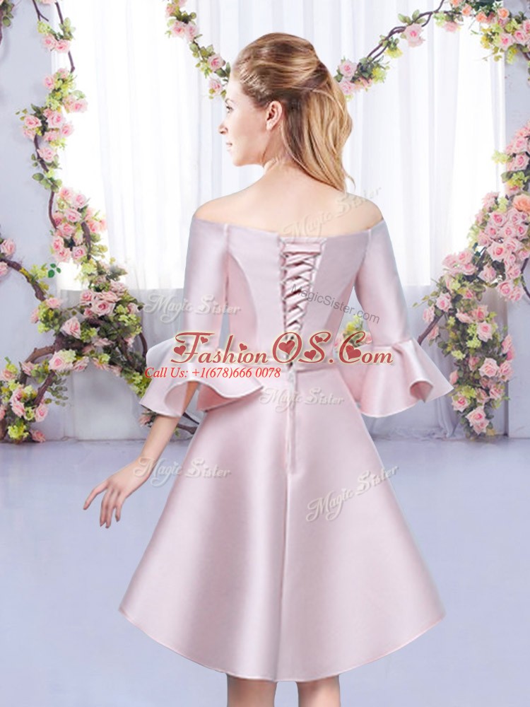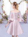 Home >  Bridesmaid Dresses >  Perfect Bridesmaid Dresses > Dazzling Baby Pink 3 4 Length Sleeve Satin Lace Up Bridesmaid Gown for Wedding Party