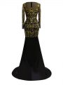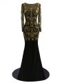 Dazzling Black Evening Wear Scoop Long Sleeves Brush Train Zipper